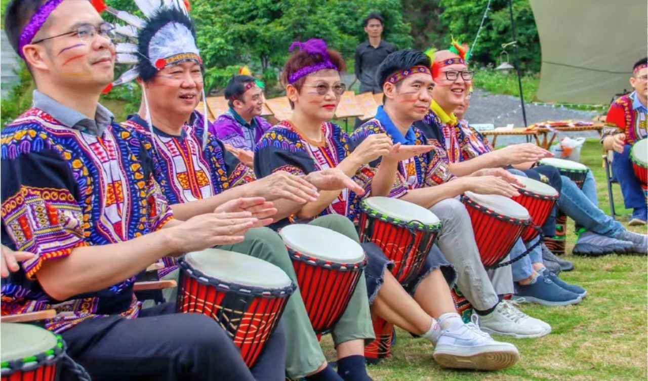 项目概述:非洲鼓团建是模仿非洲部落情境,使部落成员的配合,通过部落不同击鼓子的节奏,一起奏出最美的音乐!一个团队、一个节拍、一曲属于团队的独特鼓乐。自由奔放的小♪音乐,是团队减压面的最佳选择。音乐让沟通没有界限,打破团队的沟通障碍