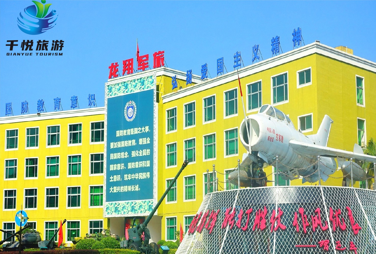 龙翔国防教育示范基地坐落在福建省福清市甘厝口,2011年开始规划设计,经过三年的建设,形成了占地600亩的国防教育基地规模。“三展馆、四场地”的格局,勾画出国防教育的主体,“三展馆”(即:中国海军舰船展馆、航天航空展馆、国防教育基础展馆)“四场地”(火箭场地、导弹场地、战机场地、坦克场地),军事项目拓展实训场及配套设施等二期工程正在建设中,二期工程项目有:“一个CS系列、两个野外场地、三个体验馆”(①真人CS野战系列;②野炊露营场地;素质拓展场地;③CS室内体验馆;靶场、飞碟、射箭、汽炮体验馆;模拟电子对抗战体验馆”。)