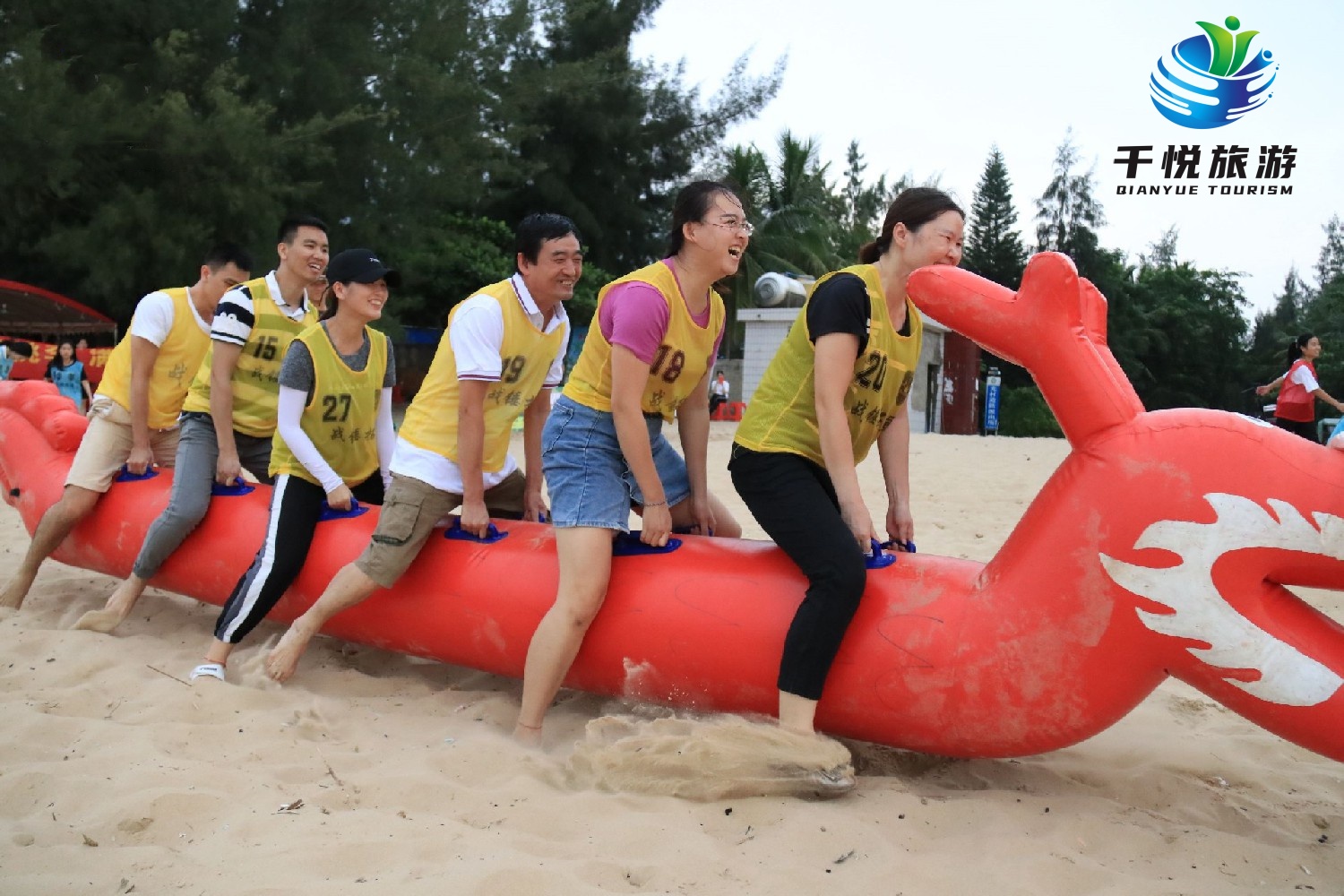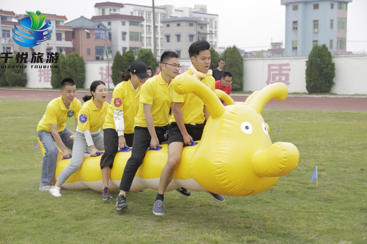 “旱地龙舟游戏规则:(成人玩法) 4—8人坐骑在充气赛龙舟道具上,队员双手握住赛龙舟的固定把手,赛龙舟道具前方立于起跑线后,裁判发令后,队员通过团队协调配合带动疯狂赛龙舟游戏道具在跑道上快速行驶,裁判安排队员注意赛龙舟道具不带拖地行走,以防摩擦漏气损坏赛龙舟道具,赛道长度根据场地制定。以各参赛队员所用的赛龙舟道具触及终点线为计时停止,往返一次,用时最短者为胜。”