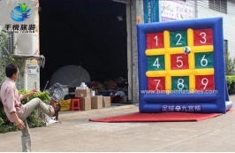 每名成员5次射门机会,足球门上的九个格的得分分别是上面三格5分、4分、5分、中间三格3分、2分、3分;下面三格1分、1分、1分。