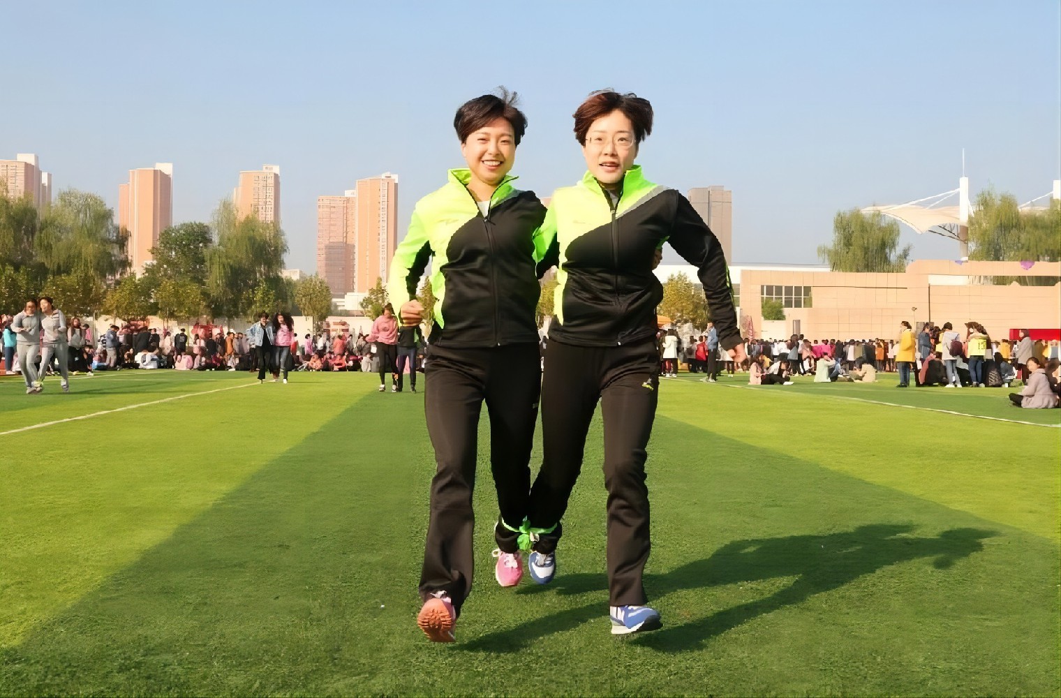 2、参赛两人相邻腿上的绑绳的位置不能低于脚裸,也不能高于膝盖部分
