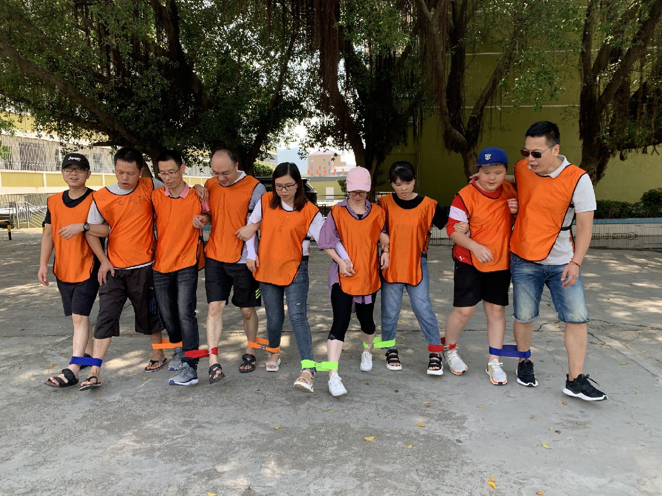 1、两个人一组,两人的其中一只脚绊绑在一齐