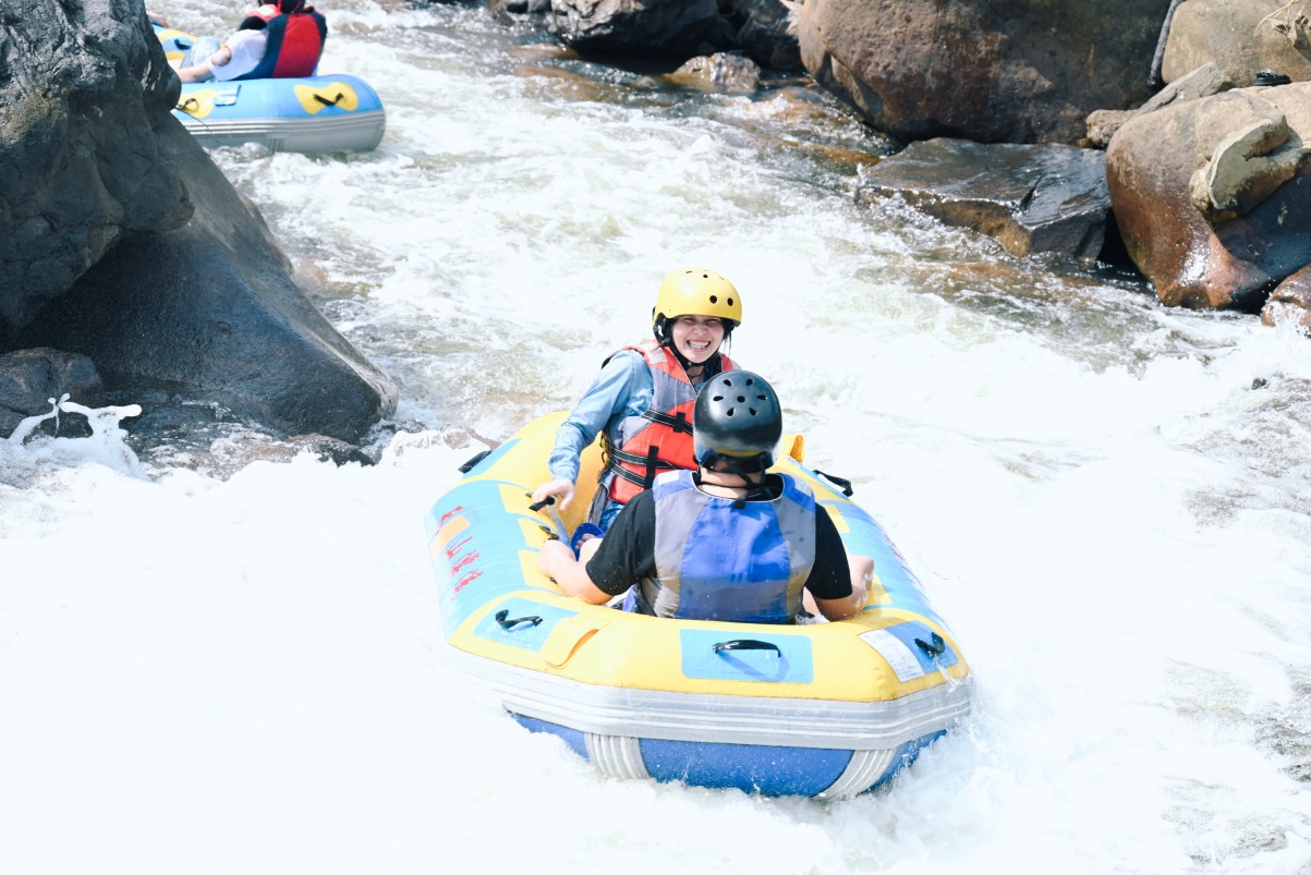 天门山漂流有着“矿泉溪漂流”的美誉,溪水清澈见底,漂流河段全程3公里多,漂流全程时间约2小时左右。乘坐皮艇顺流而漂,两岸风光秀丽幽奇,水质清澈透明,漂流水道弯曲起伏,波涛汹涌有4米多高的垂直瀑布,长50米的斜坡原始石滩,既惊险又安全,富有激情,乐趣无限。
